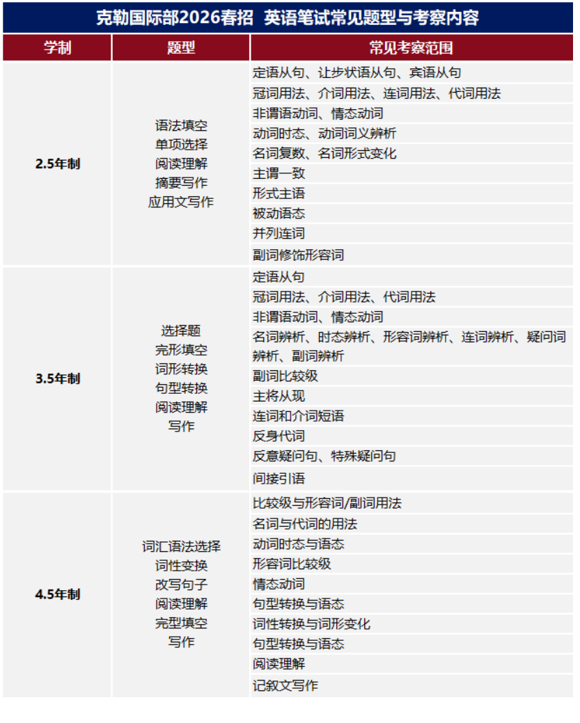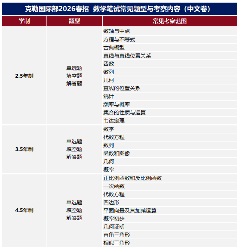 2026克勒國際部春季招生,將對學(xué)生進行綜合能力測試評估后,擇優(yōu)錄取。