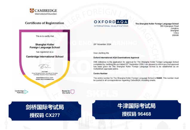 目前,克勒國際部已經(jīng)獲得英國CAIE(授權(quán)碼CX277)和牛津AQA考試局(授權(quán)碼96468)授權(quán),是英國IGCSE、A-Level課程官方學(xué)習(xí)中心和官方授權(quán)考點。同時我校也是目前虹口區(qū)唯一一所資質(zhì)齊全的國際高中(民辦學(xué)校辦學(xué)許可證編碼131010930000028)。